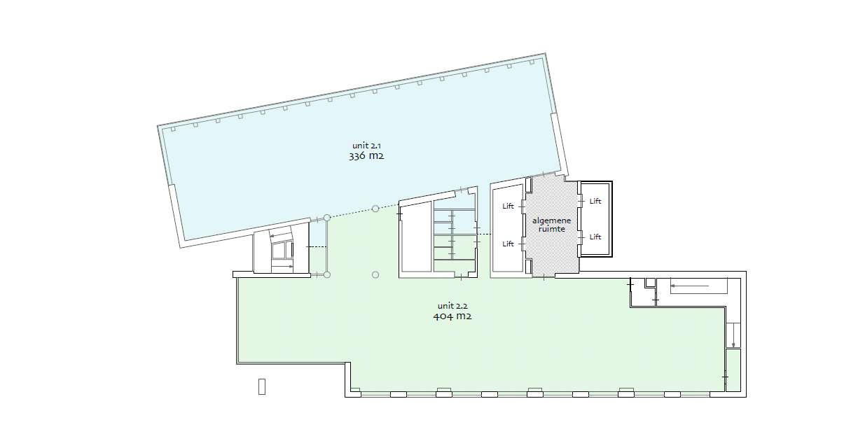 2e verdieping (2.1) | circa 336,5 m² v.v.o. | per direct | € 185,00 per m² per jaar.