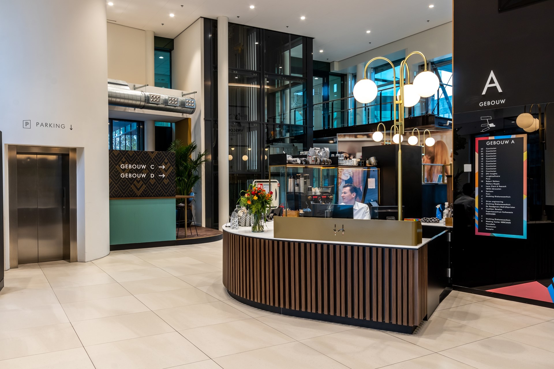 • representatieve centrale entree voorzien van bemande receptie;