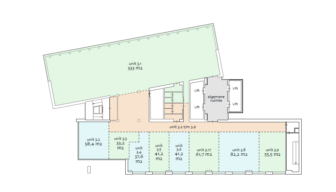 Unit 3.2 en 3.3 | circa 91,6 m2 v.v.o. | per 1 november 2026, eerder in overleg