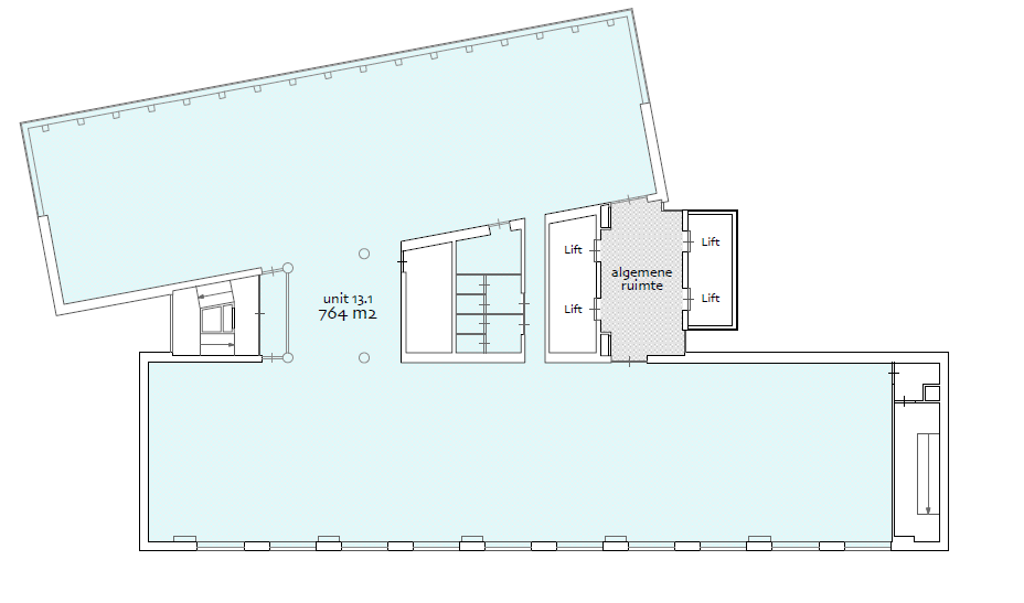13e verdieping (13.1) | circa 764,4 m² v.v.o. | per direct | € 200,00 per m² per jaar.