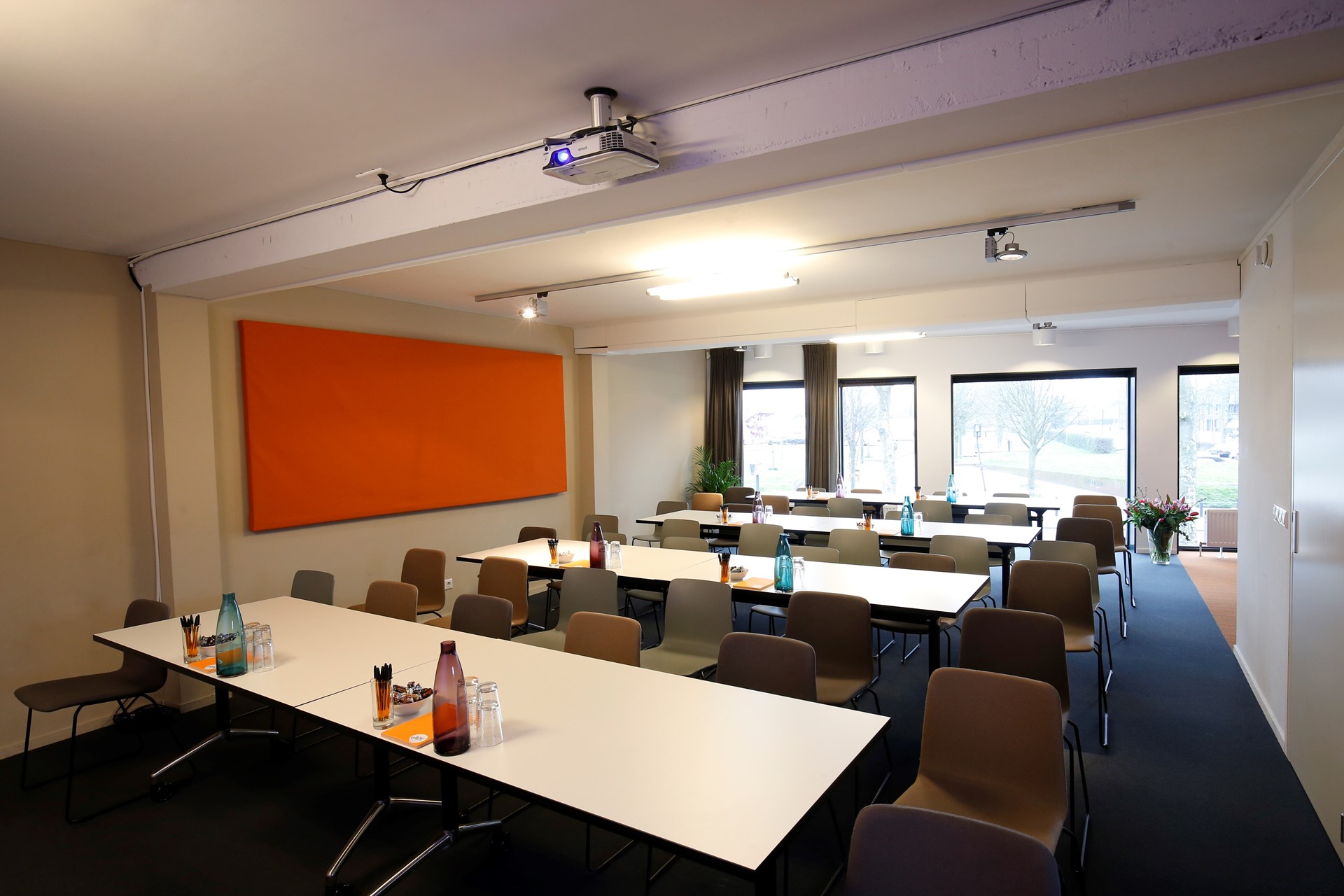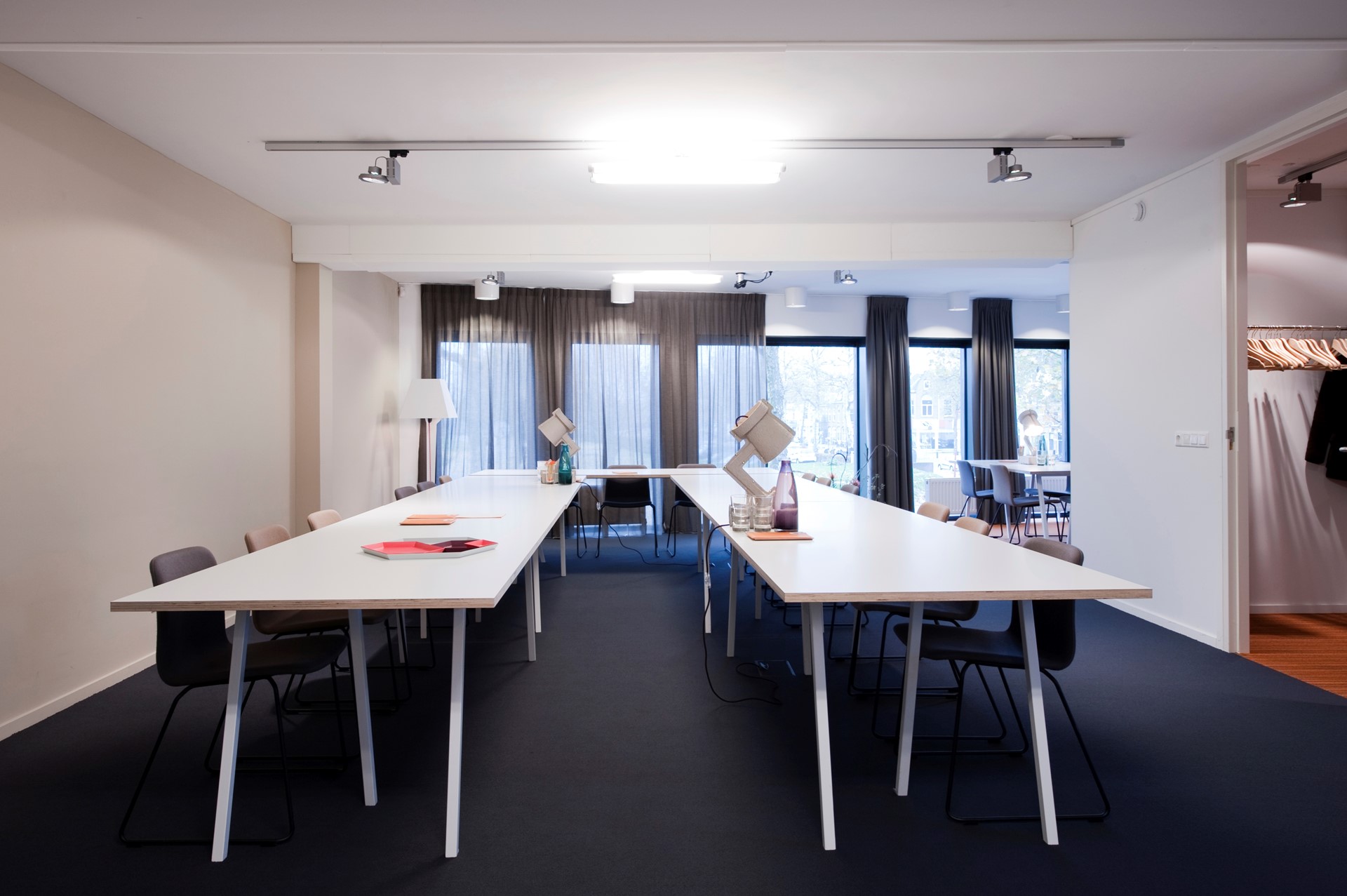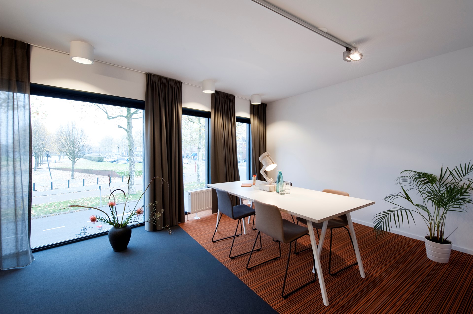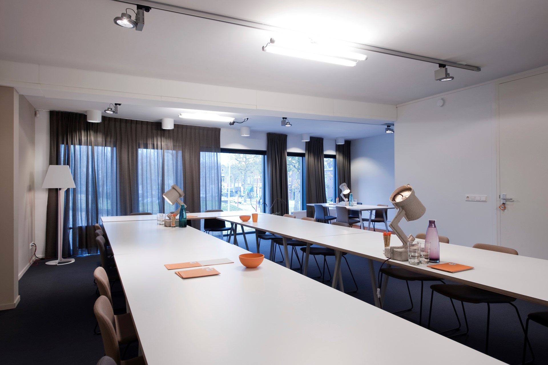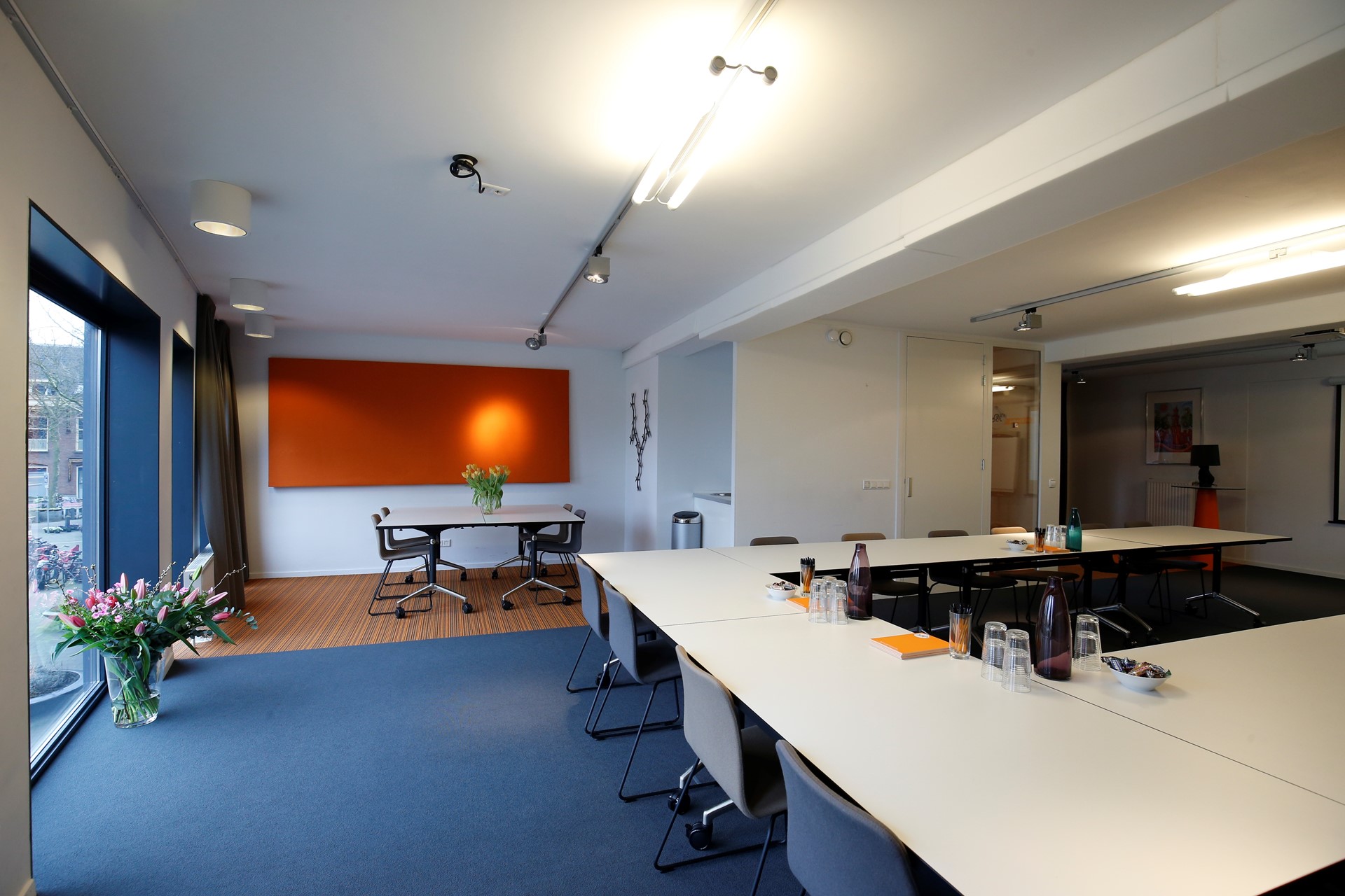 De ruimtes zijn zeer flexibel in te delen en bieden veel natuurlijke lichtinval. De grootste ruimte geeft door verdiepingshoge ramen een prachtig uitzicht op het Griftpark.