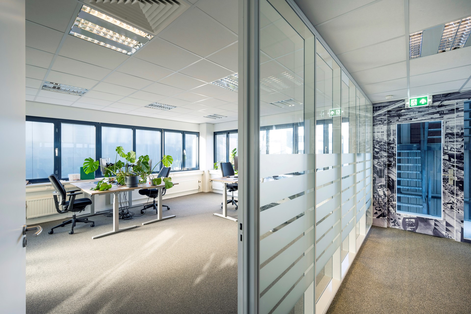 • huidige indeling middels scheidingswanden (deels glas);