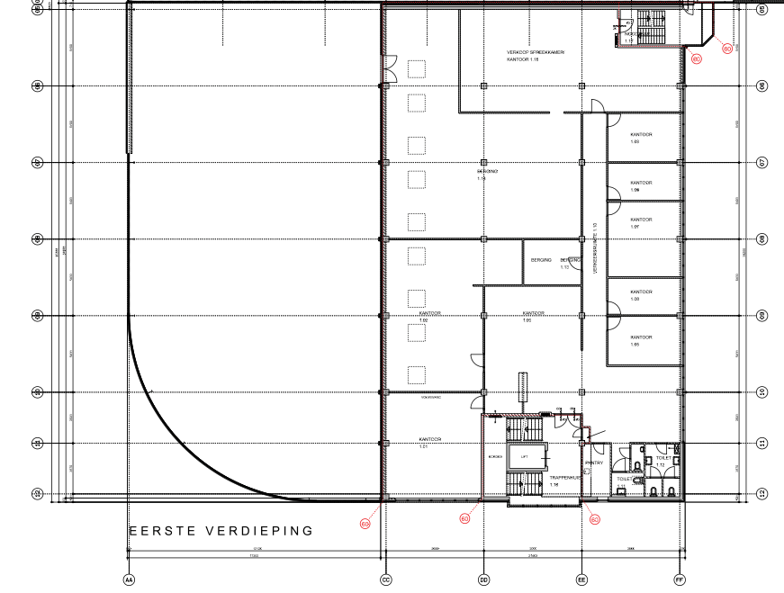 Kantoorruimte € 78,- per m² vvo, excl. BTW per jaar