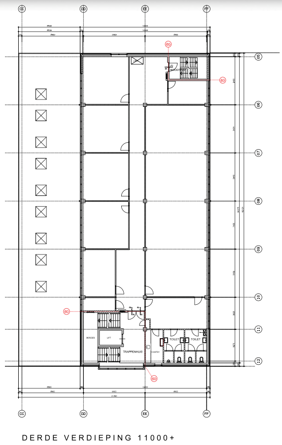 • vier kantoorverdiepingen met vergelijkbare indeling en afwerkingsniveau